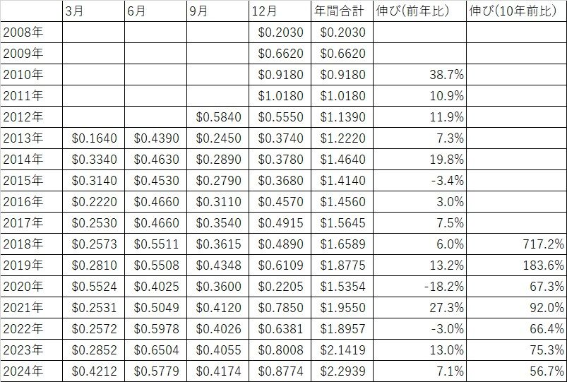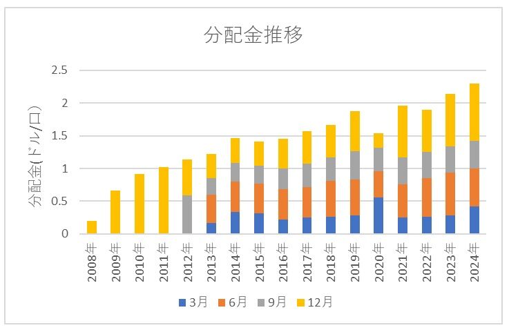 2025年01月05日|米国株 バンガード・トータル・ワールドストックETF【VT) 【ETF概要】FTSEグローバルオールキャップインデックスに連動することをめざす。この指数は先進国と新興国を対象とし時価総額加重で算出される。また、銘柄は4半期ごとに入れ替えが行われる。【分配金の推移】2015年、2020年、2022年に分配金は前年比で減少。2020年はコロナの影響を受けて分配金は大きく減少しました。とはいえ平均すると分配金は前年比で9%増えている。 スポンサードリンク mixiチェック 「米国株」カテゴリの最新記事 コメント コメントフォーム 名前 コメント 評価する リセット リセット 顔 星 投稿する 情報を記憶 < 前の記事次の記事 >